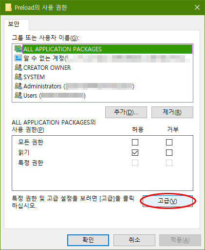 (Preload의 상위의 상위 폴더인 .DEFAULT의 권한대로 이용하지 않고,