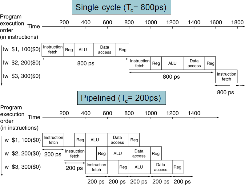*pipelining은 parallelism을 이용하여 instruction의 throughput(처리량)을 늘리는 것이다.
