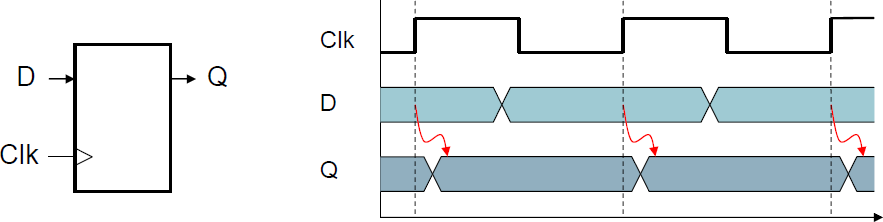 Sequential Elements는 현재값과 input, clock 타이밍에 의해 output이 결정.