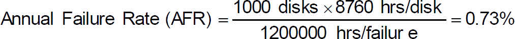 ㆁ만약 disk 제조사가 MTTF를 1,200,000hr(140yr)로 명시한다면..??
