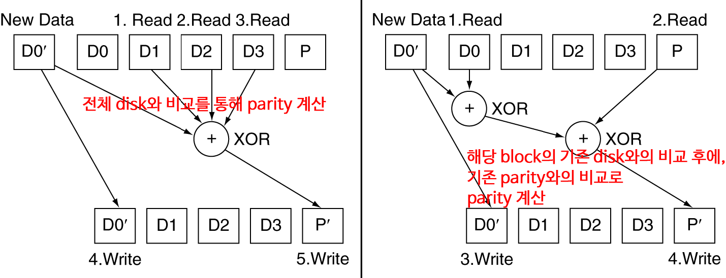 ㆍ새로운 parity를 계산하고, 해당 data disk와 parity disk를 업데이트.