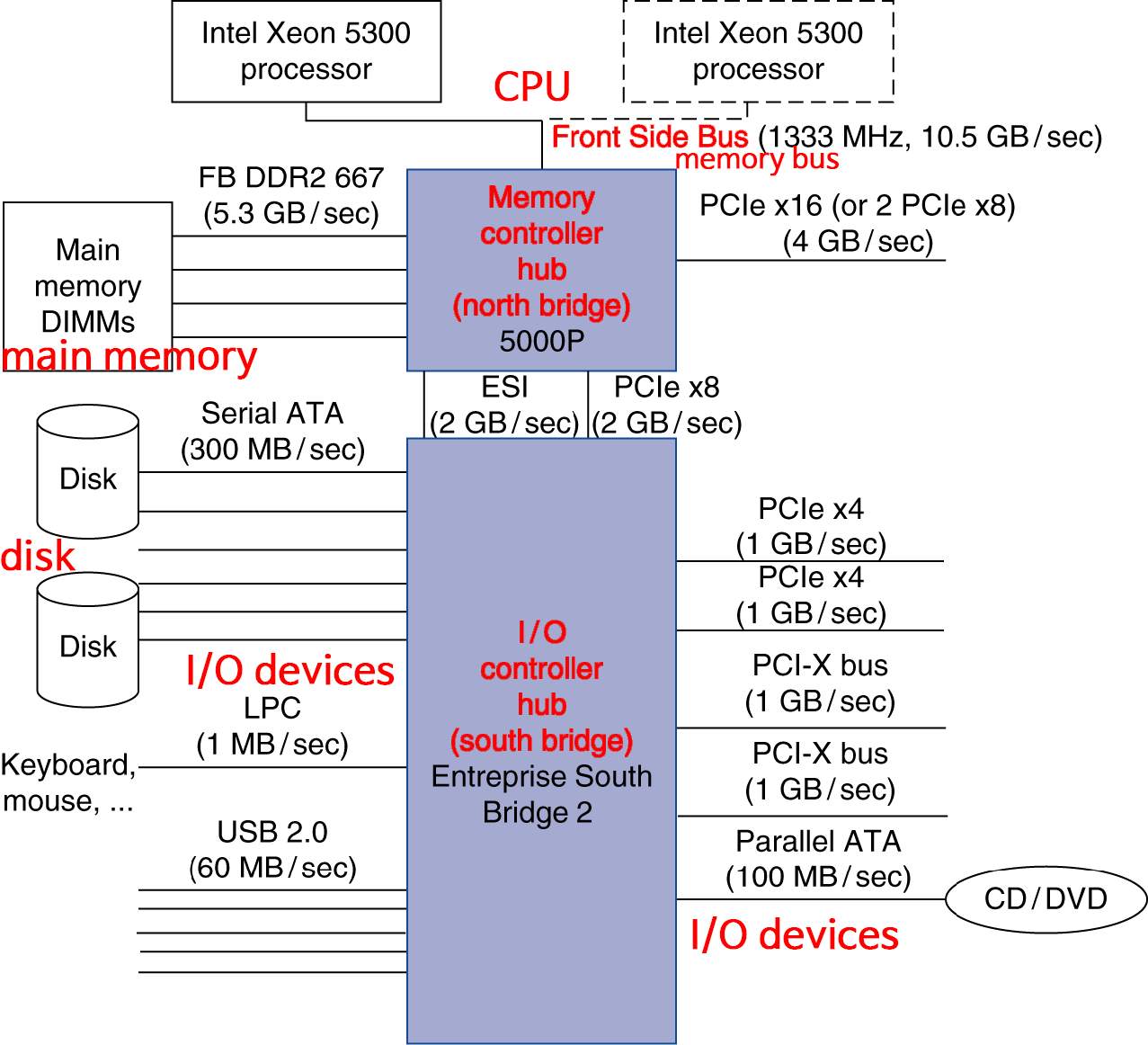 *CPU, memory, I/O controllers를 연결하는데 bus를 사용