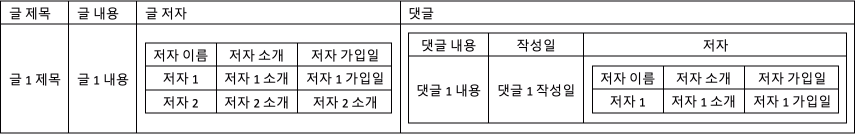 ㆍSELECT 댓글.내용, 댓글.작성일, 저자.이름, 저자.소개 FROM 댓글 LEFT JOIN 저자 ON 댓글.저자아이디 = 저자.아이디