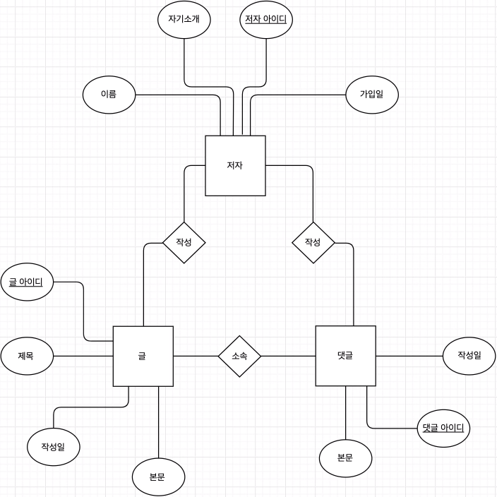 ※ 아직 Relationship의 주체, 대상, N:M 등을 표현하지 않았기에 완성형은 아님.