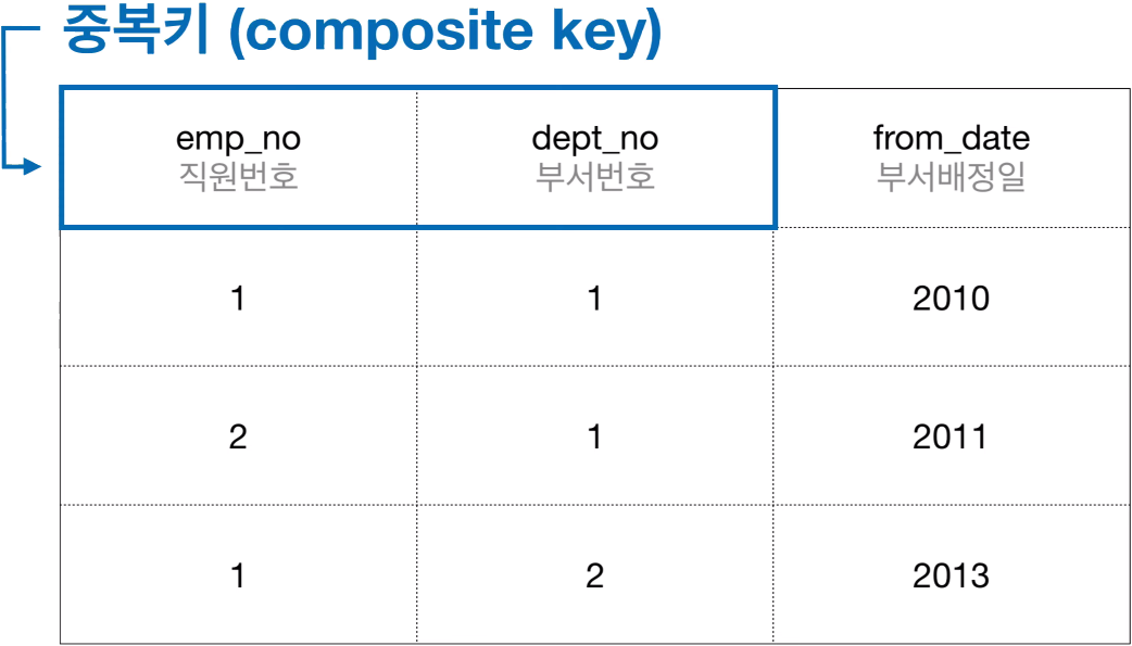이 묶음 단위를 복합키(composite key)로 사용할 수 있다.