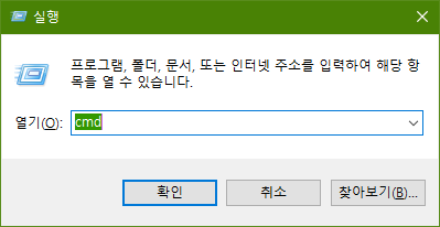 실행창이 뜨면 cmd를 쳐줍니다.