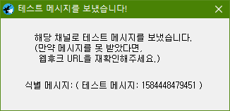 8. 테스트 메시지 전송 버튼을 눌러, 채팅방에 메시지가 오는지 확인합니다.