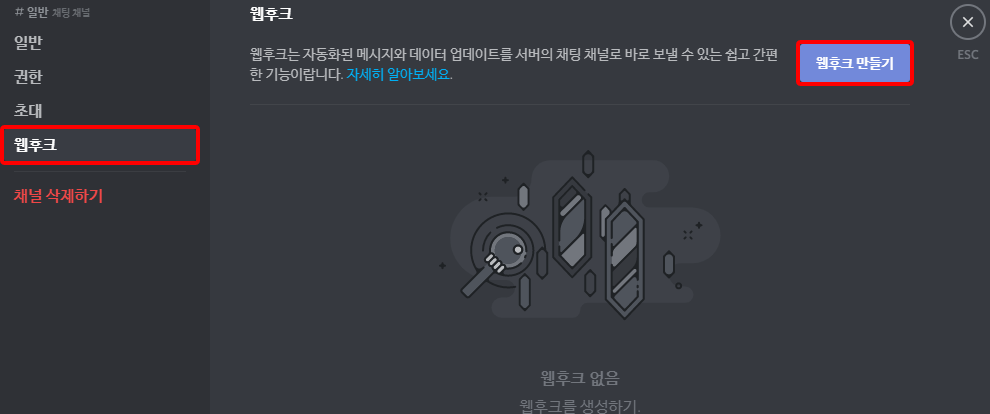 디스코드는 채널에 웹후크를 직접 추가해야하니,