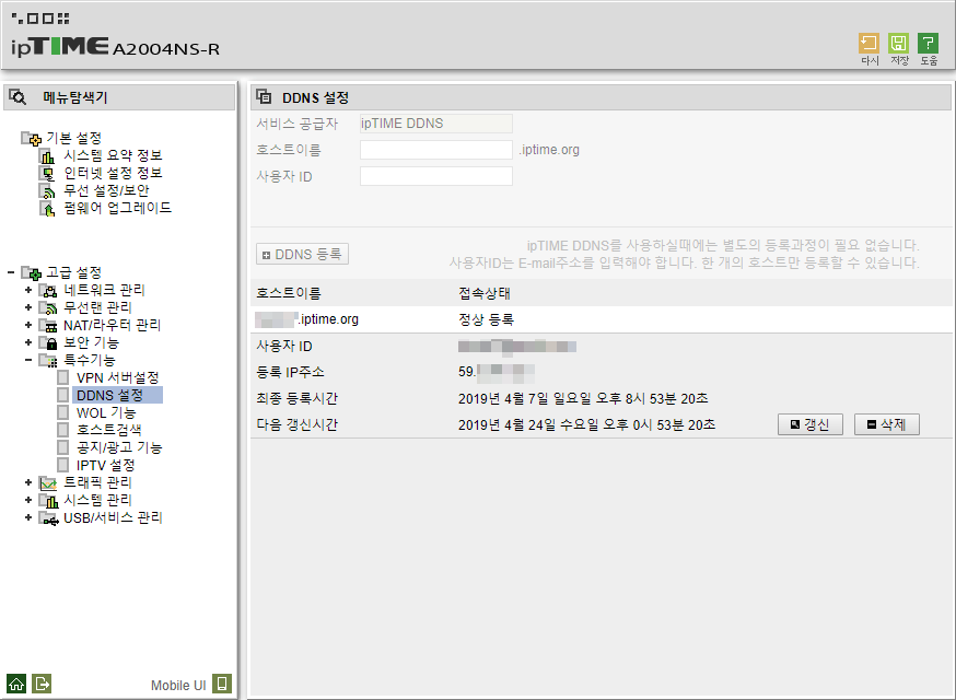 DDNS는 안되는 공유기도 있지만.. iptime의 경우 공유기 1대당 1개씩은 무료로 지원해줍니다.