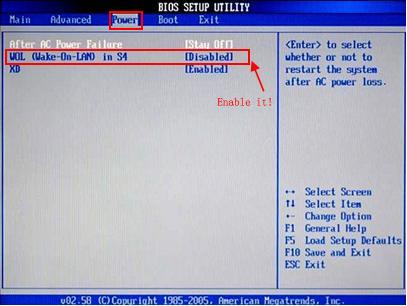 보통 POWER 부분을 찾아 Wake On Lan을 Enable로 하고 저장하시면 됩니다.