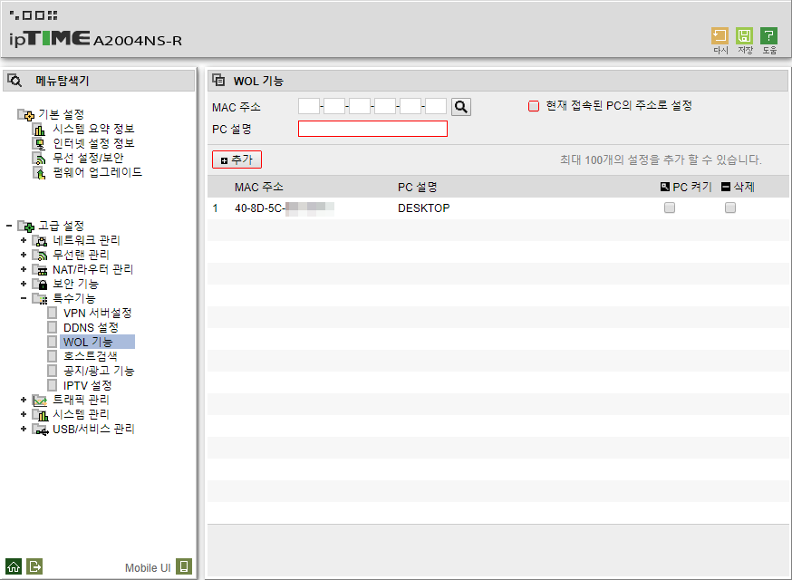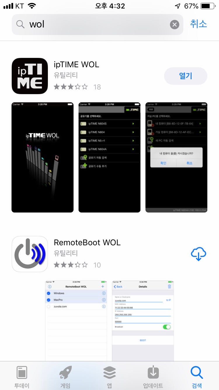폰에서 WOL 앱을 받습니다. iptime은 전용 앱이 있고, 다른 기기는 모바일 매니저에 있기도 하고 그렇습니다.