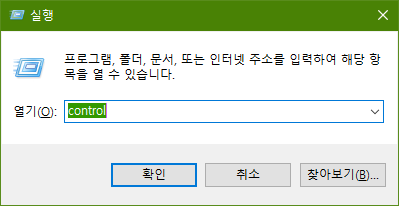 [Win+R]로 실행창을 열고, control이라고 입력해서 제어판을 엽니다.
