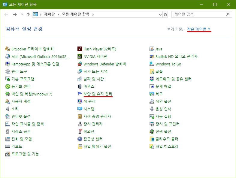보안 및 유지 관리로 들어갑니다.