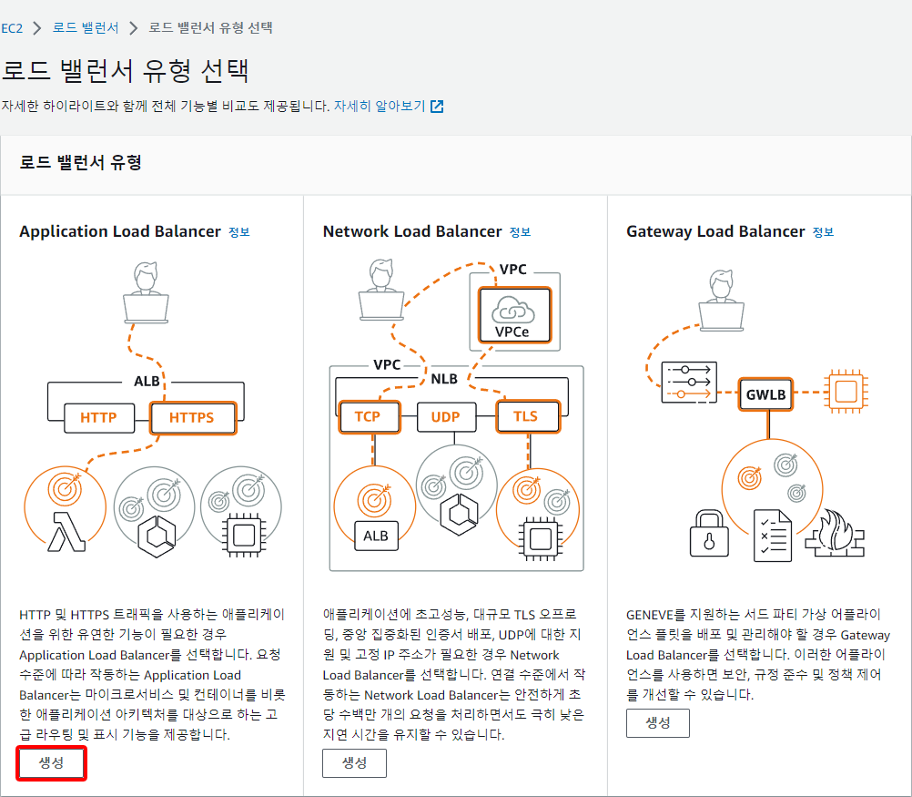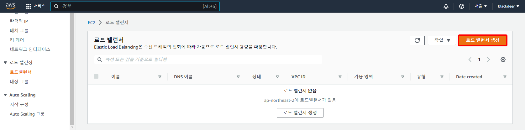 EC2 > 로드 밸런서로 이동하여 로드 밸런서 생성