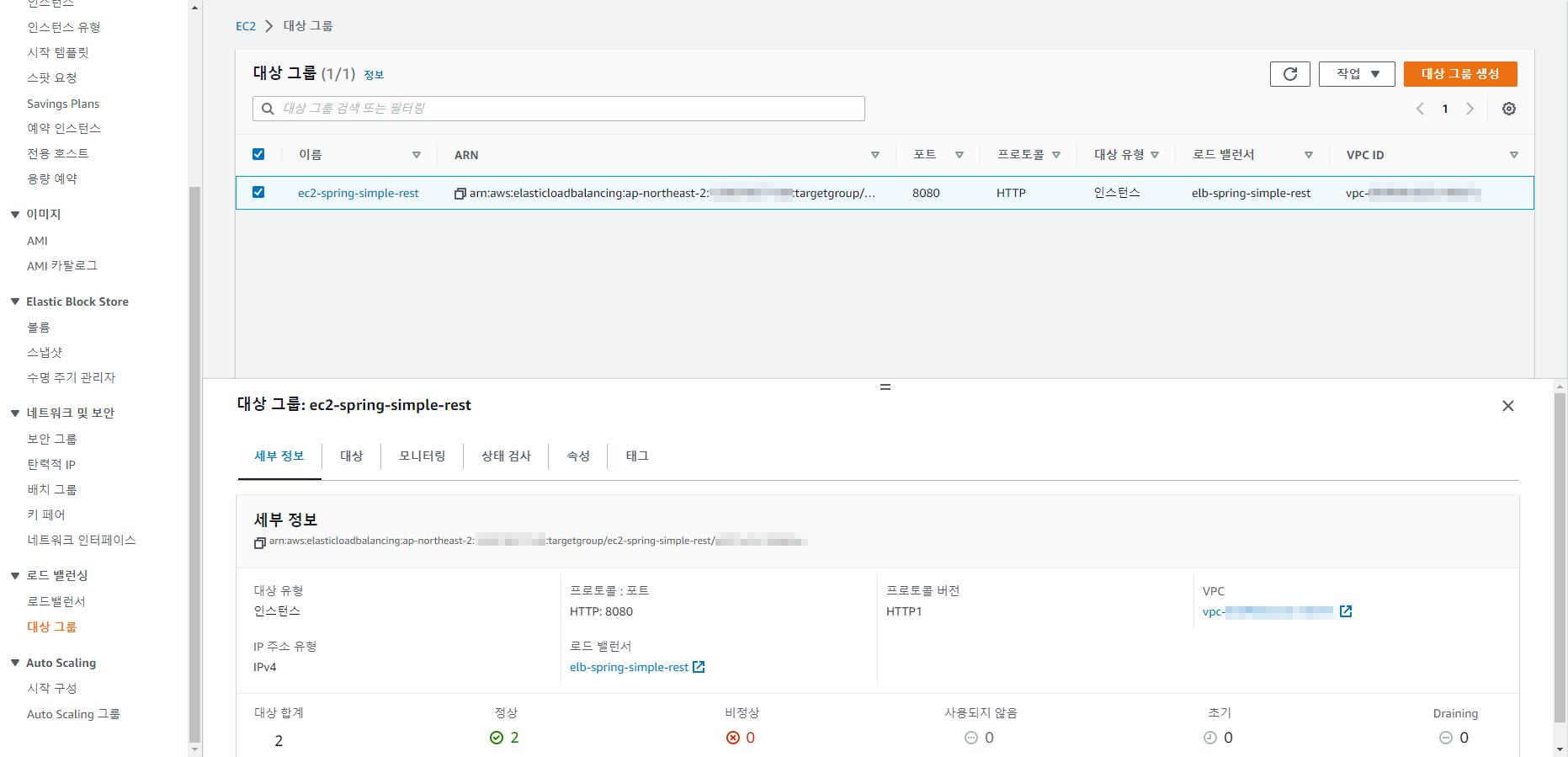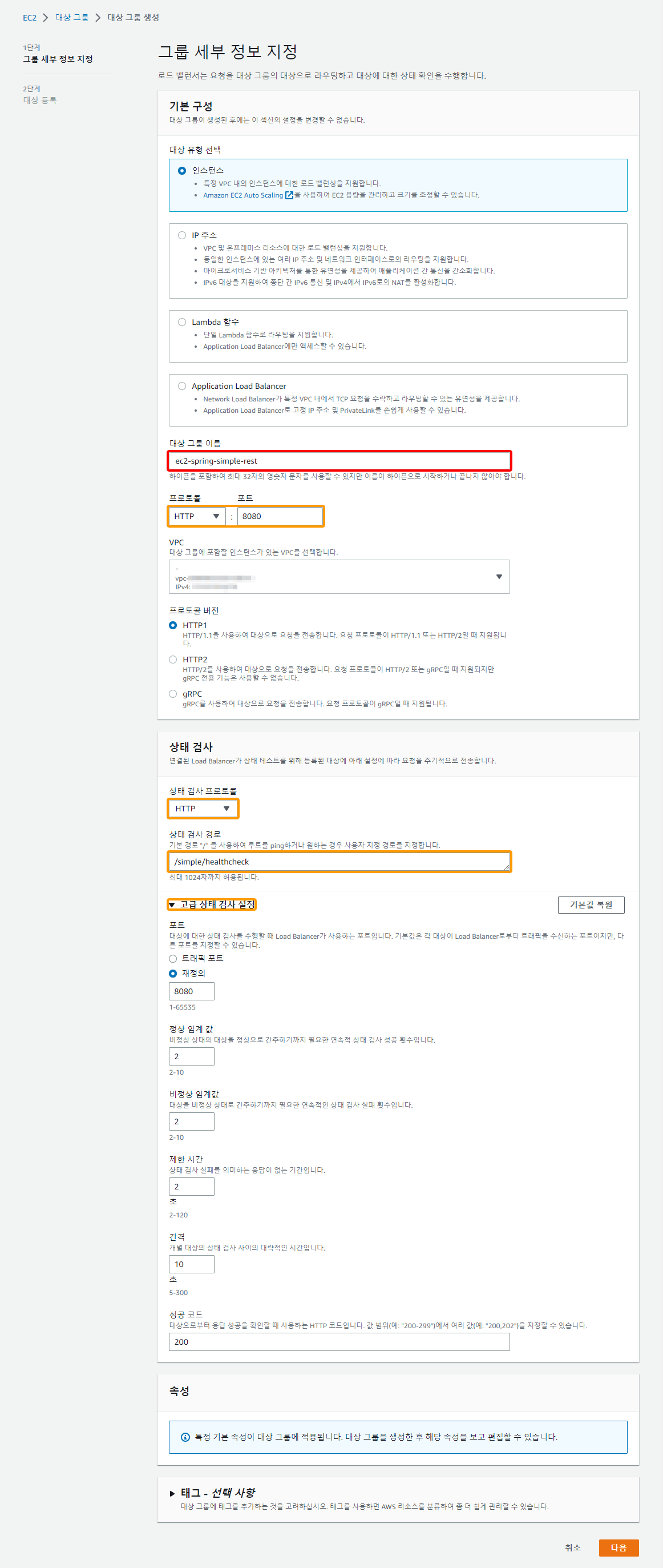 대상 그룹이 없다면, 대상 그룹 생성을 한 후 지정해준다.