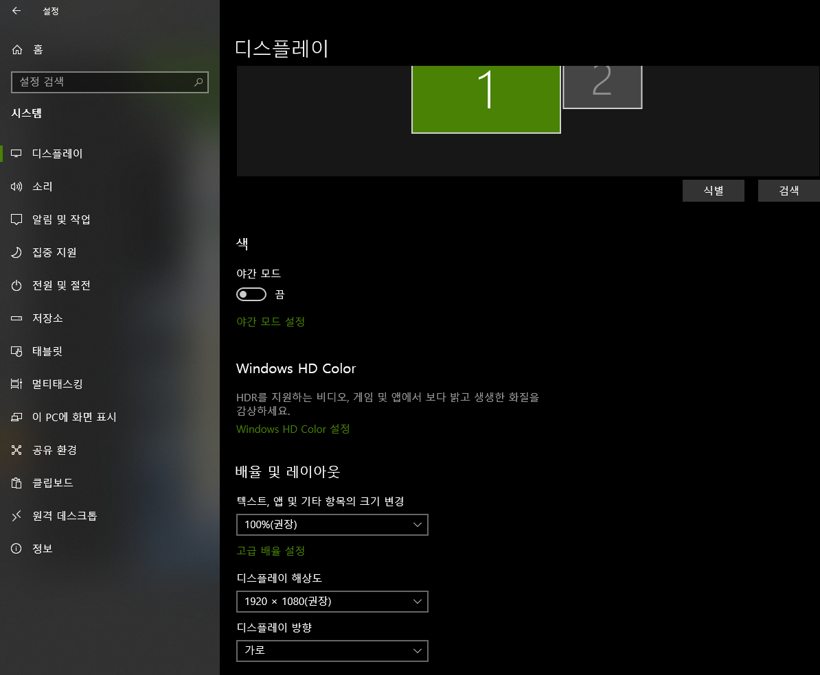 참고로 존재하지 않는 해상도는 역시나 설정할 수 없으니, 없는 해상도의 추가는 아래의 포스트를 참고.