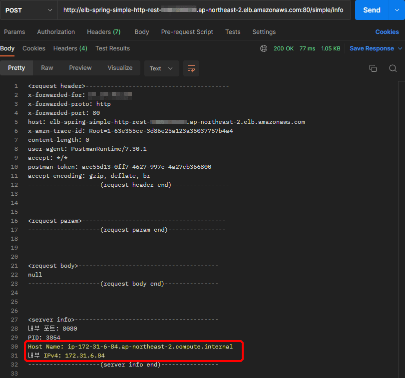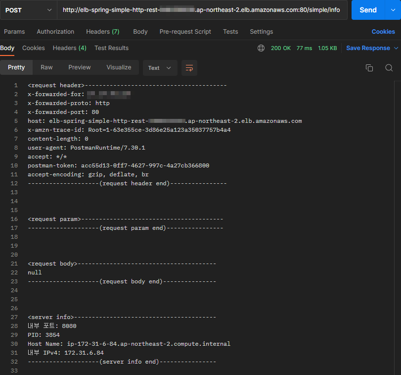 로드 밸런서로 애플리케이션의 API를 사용했을 때 응답을 받을 수 있었다.