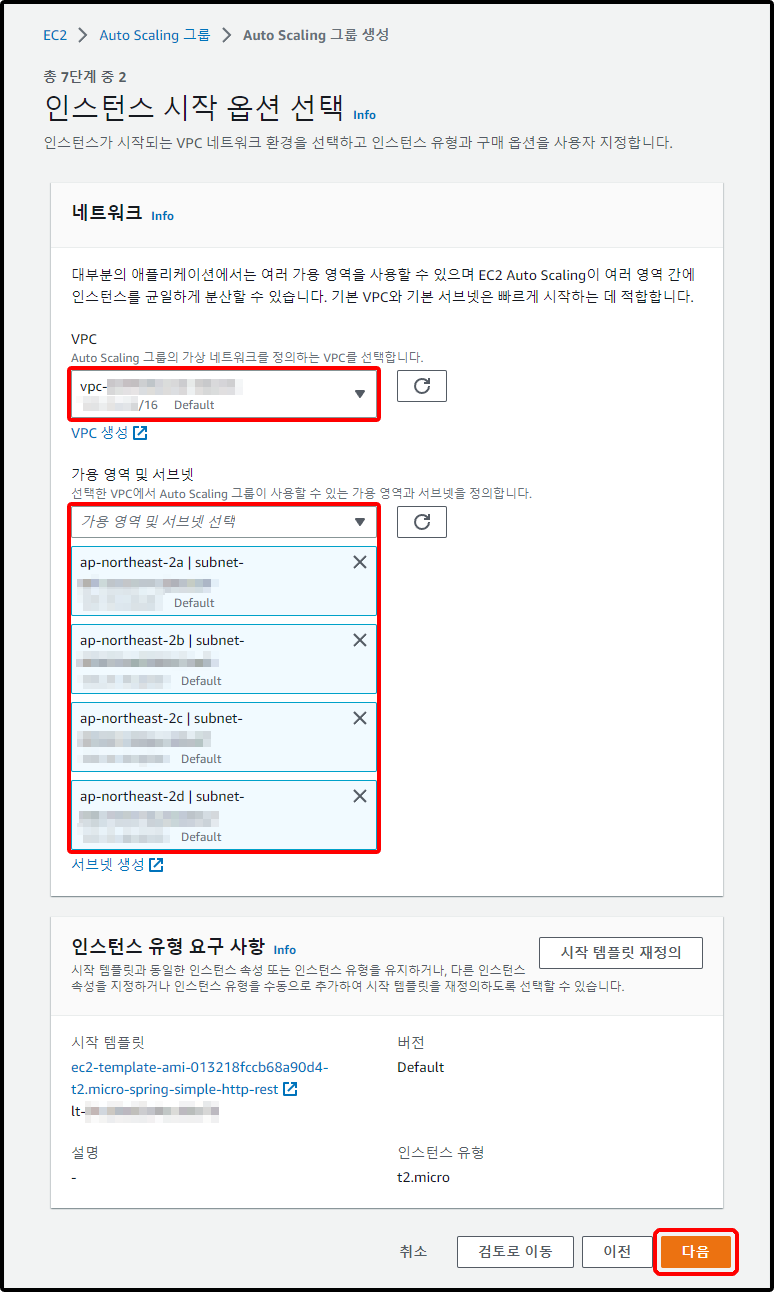 EC2 인스턴스를 만들 때처럼 원하는 대로 설정해준다.