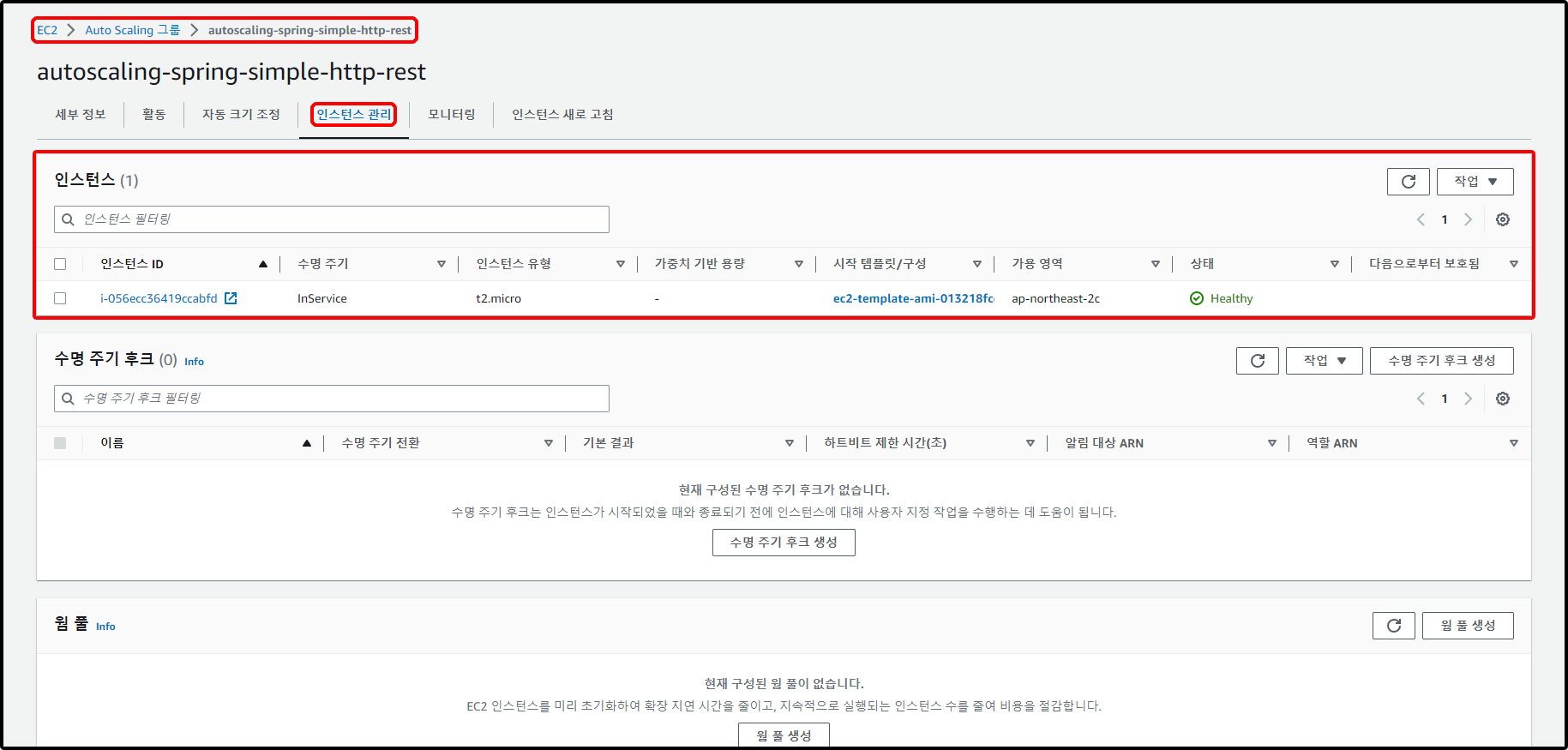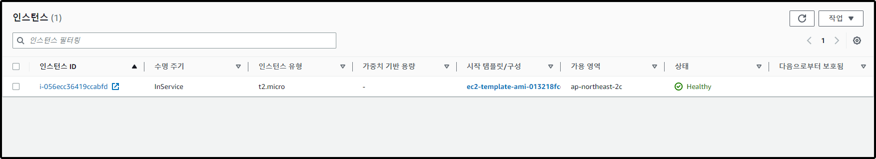 생성한 Auto Scaling 그룹에서 작동하고 있는 인스턴스들의 상태를 확인할 수 있다.