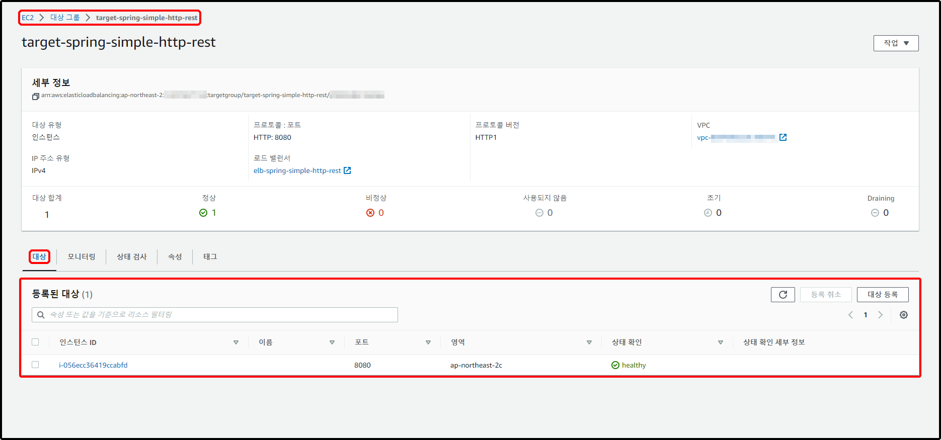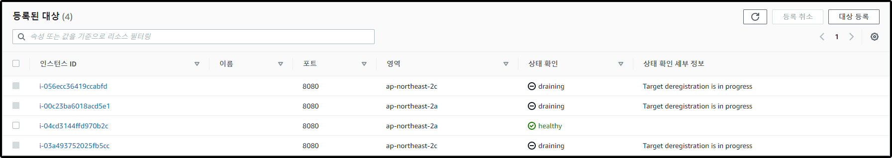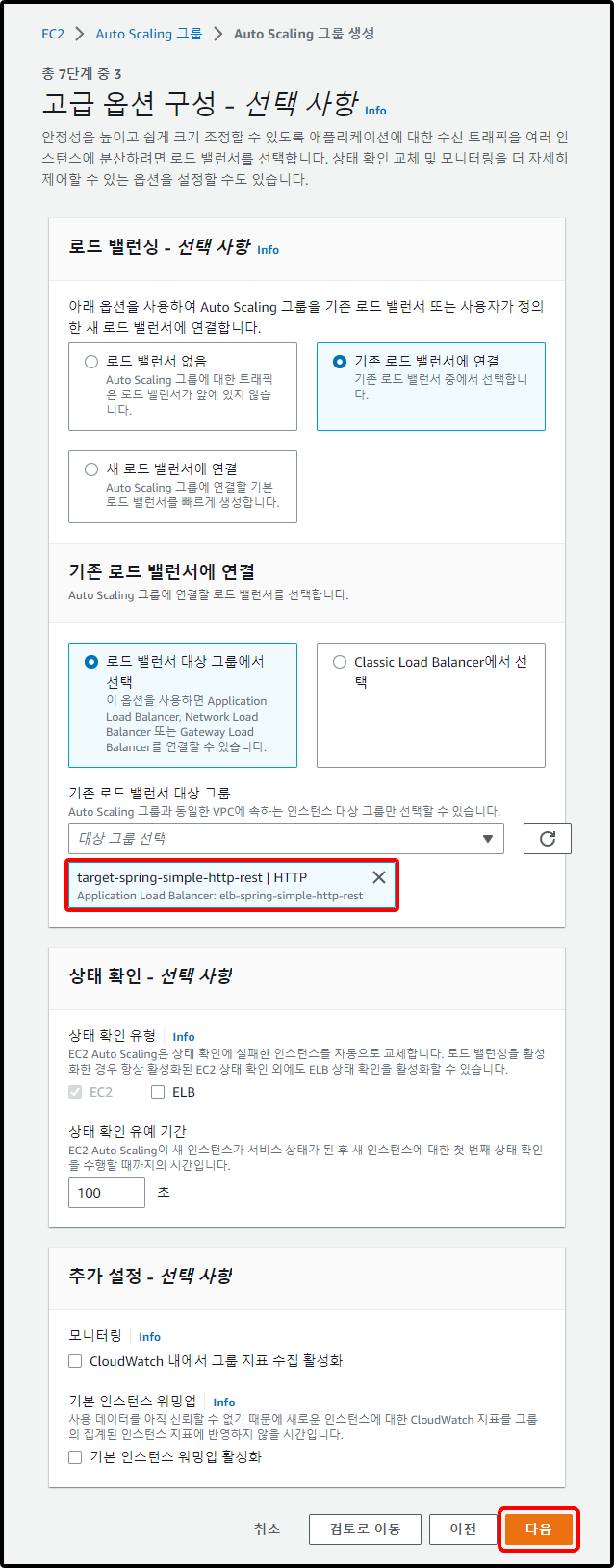 (준비 과정에서 로드 밸런서 대상 그룹에서는 애플리케이션의 API 응답여부를 척도로 설정했었다.)
