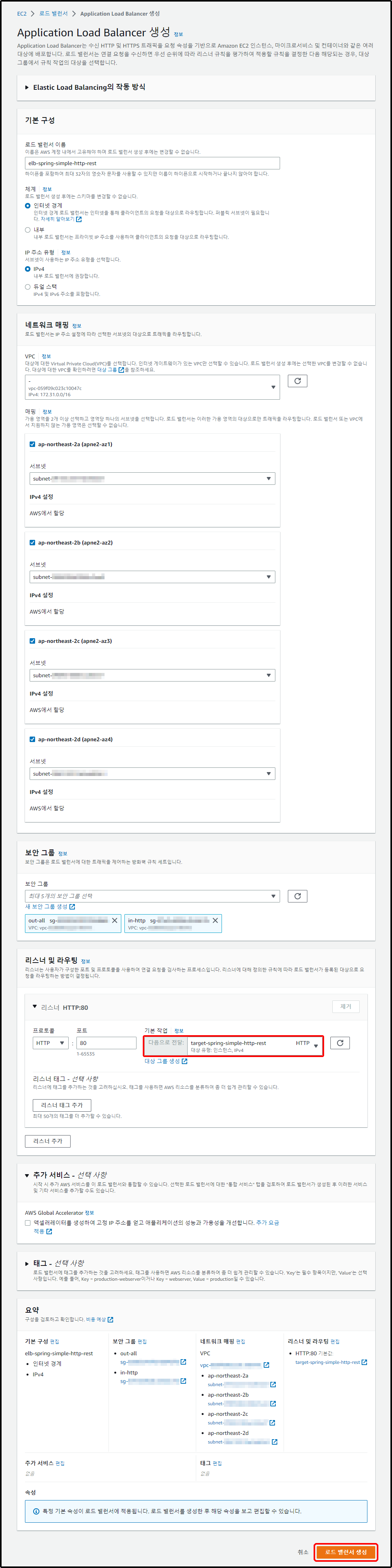 ㆍ준비해둔 로드 밸런서의 대상 그룹을 선택해준다.